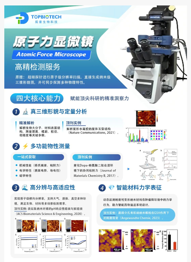为进一步支撑科研需求,灵赋拓普生物的原子力显微镜AFM相关检测服务还包括以下专业化模块,适配顶刊发表需求: